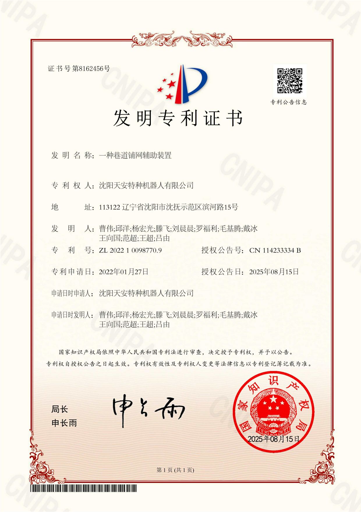 专利证书