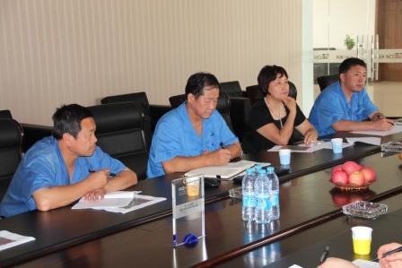2014年7月4日,抚顺市总工会劳动保护部部长刘洪、副部长董学贤,由抚顺经济开发区总工会副主席杨慧姝、部长王圣洁陪同,对我公司《国际劳工组织中小型企业职业安全卫生防护工具包》试点实施工作情况进行走访。