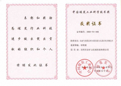 科学技术奖: 低透气性煤层群无煤柱煤与瓦斯共采关键技术