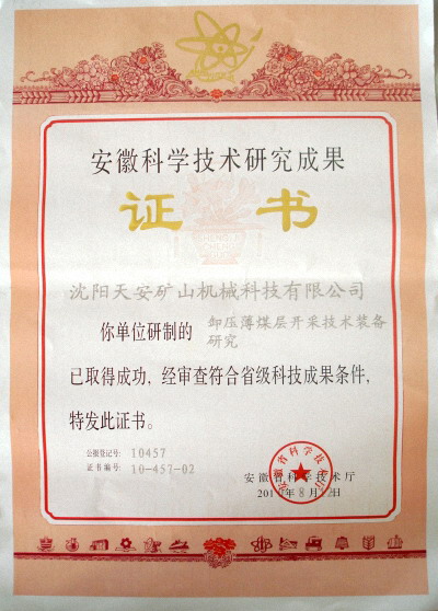 省级科技成果: 卸压薄煤层开采技术装备研究