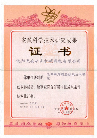 省级科技成果: 急倾斜厚煤层综采技术研究