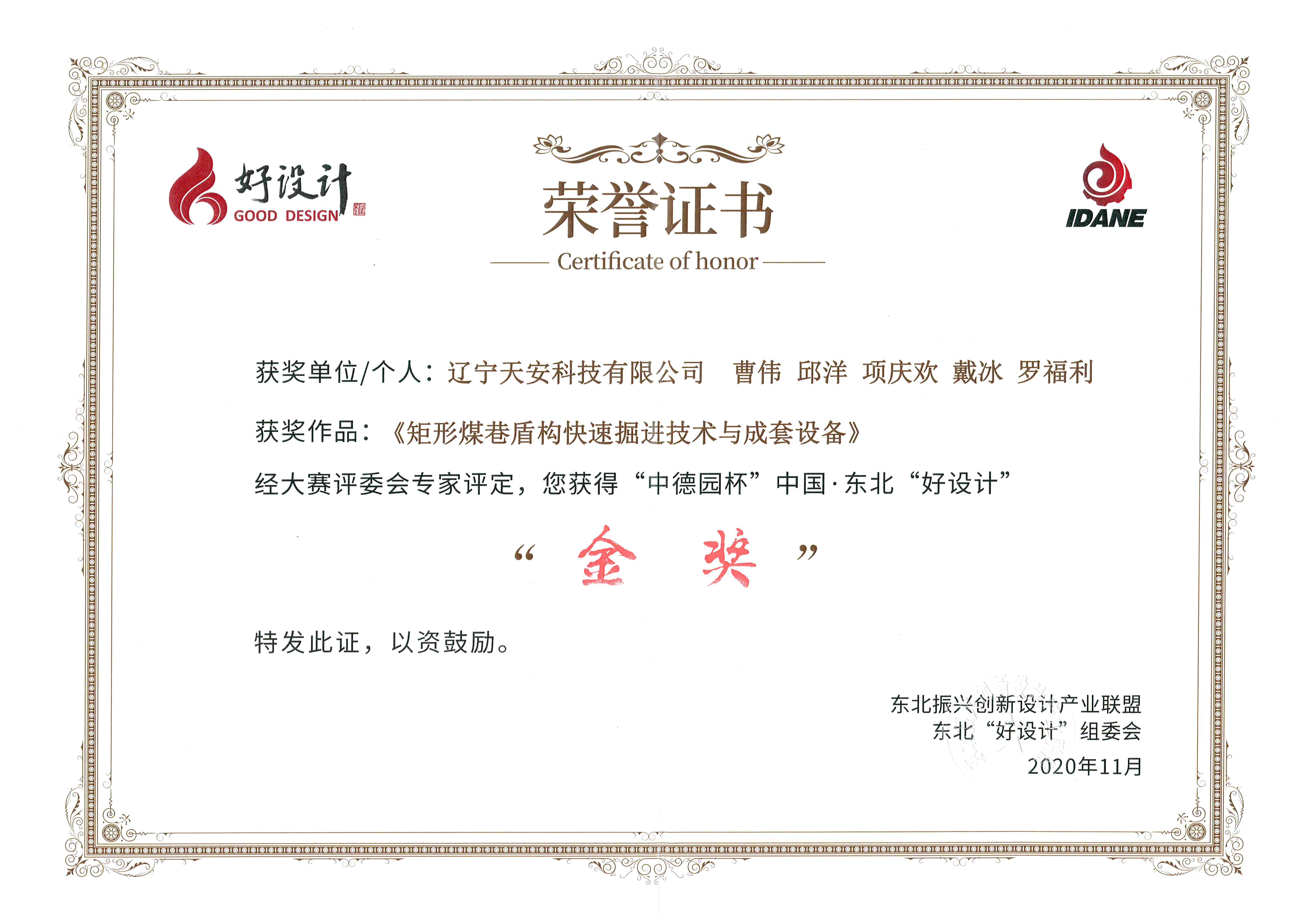 中德园杯中国东北好设计金奖-矩形煤巷盾构快速掘进技术与成套设备